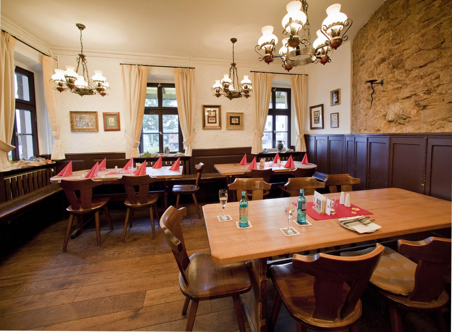 In the beer & cider pub Friedberger Warte we offer typical Hessian specialties. Here you can celebrate in the inner courtyard with up to 200 people. The Stube offers space for up to 45 people.